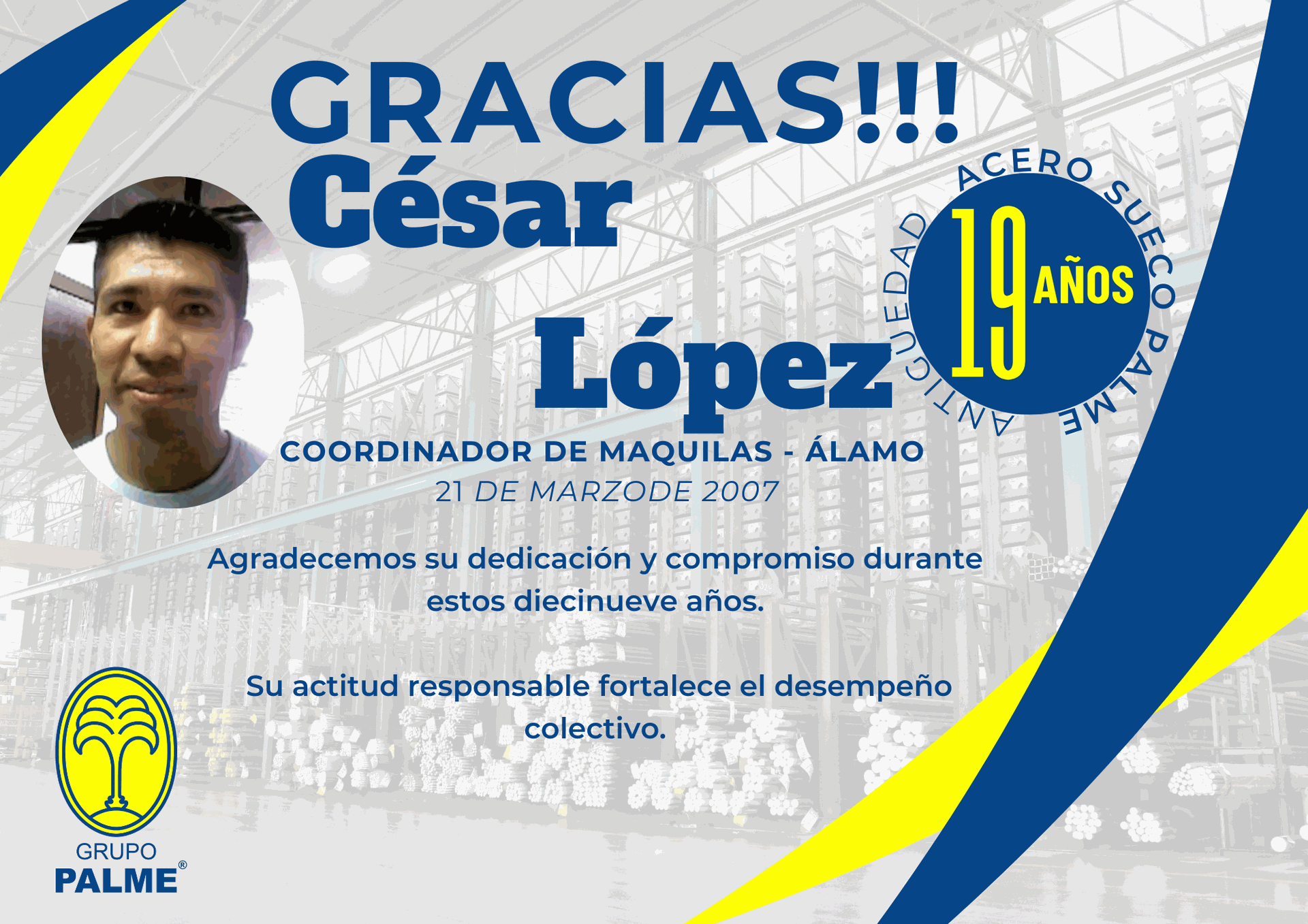 A todos y cada uno de ustedes, gracias por ser parte de esta historia, por su entrega diaria y por contribuir a que Grupo Palme siga avanzando con solidez y visión de futuro. Nos sentimos orgullosos de contar con su talento y les deseamos muchos más años de crecimiento, logros y éxito compartido.